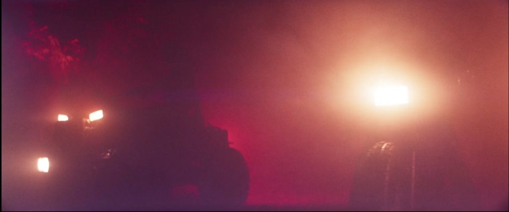 The style of this scene is a bit different from what the movie has done so far. The colours are less muted and more Hollywood-blockbuster, Michael-Bay-style, with your standard blue and orange colourisation. The introduction of the Children of the New Dawn has almost brought a disturbance in the film’s visuals up to now, a lot like the disturbance Jeremiah has brought to Red’s life the moment he laid eyes on Mandy (even though Red is not aware of this disturbance at this moment, the viewer already has gotten the sense that some shit is about to go down).